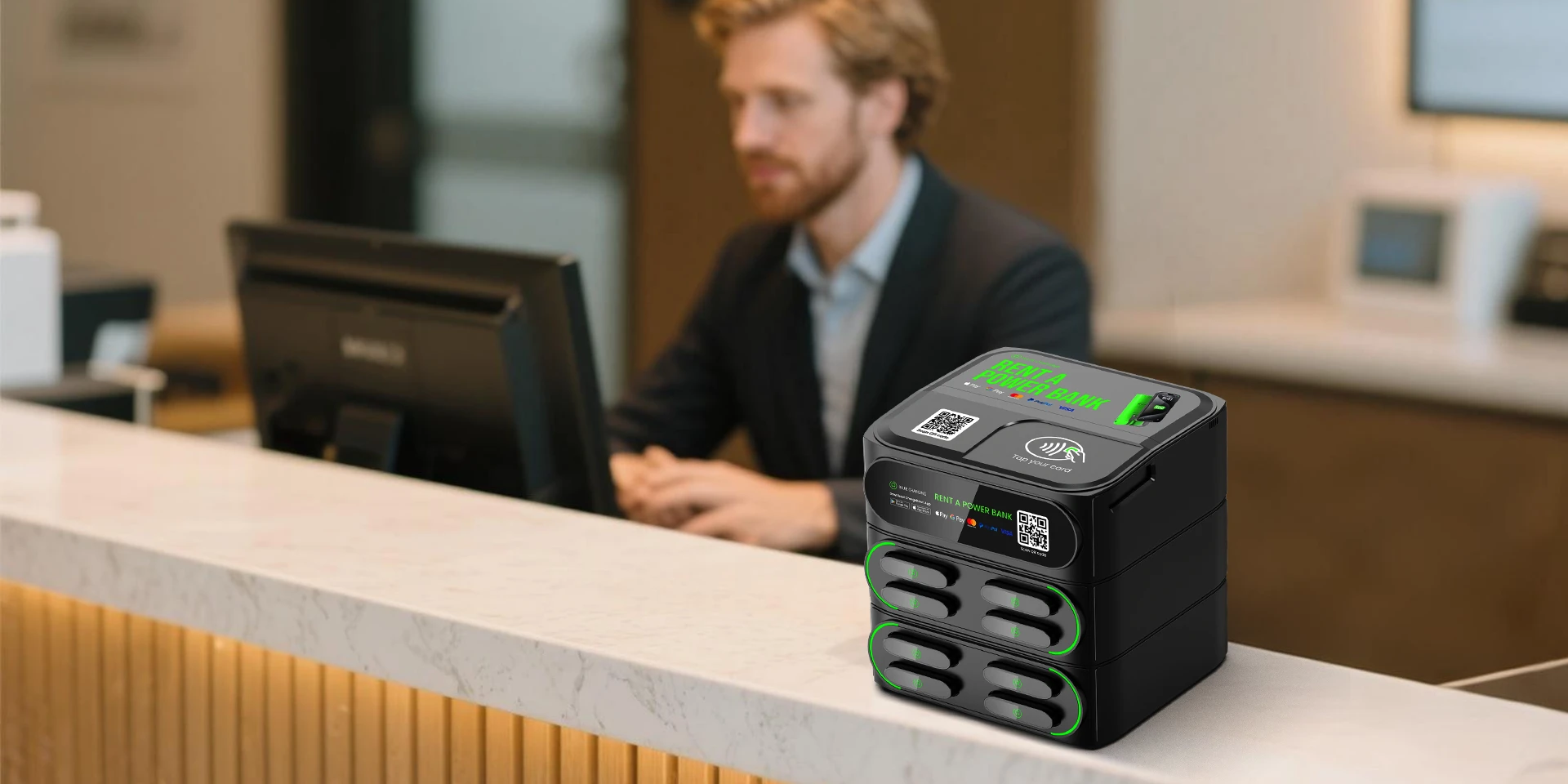不带屏MINI POS结构化充电站支持内嵌PAX / Stripe /Sumup /Mypos/Nayax-UNO mini多种POS。通过刷卡/NFC(Apple Pay / Google Pay / Samsung Pay)等多种租借方式,让用户能便捷租借。全场景适配的解决方案,能降低用户使用门槛,扩大服务覆盖人群,助力投资者快速抢占市场份额。