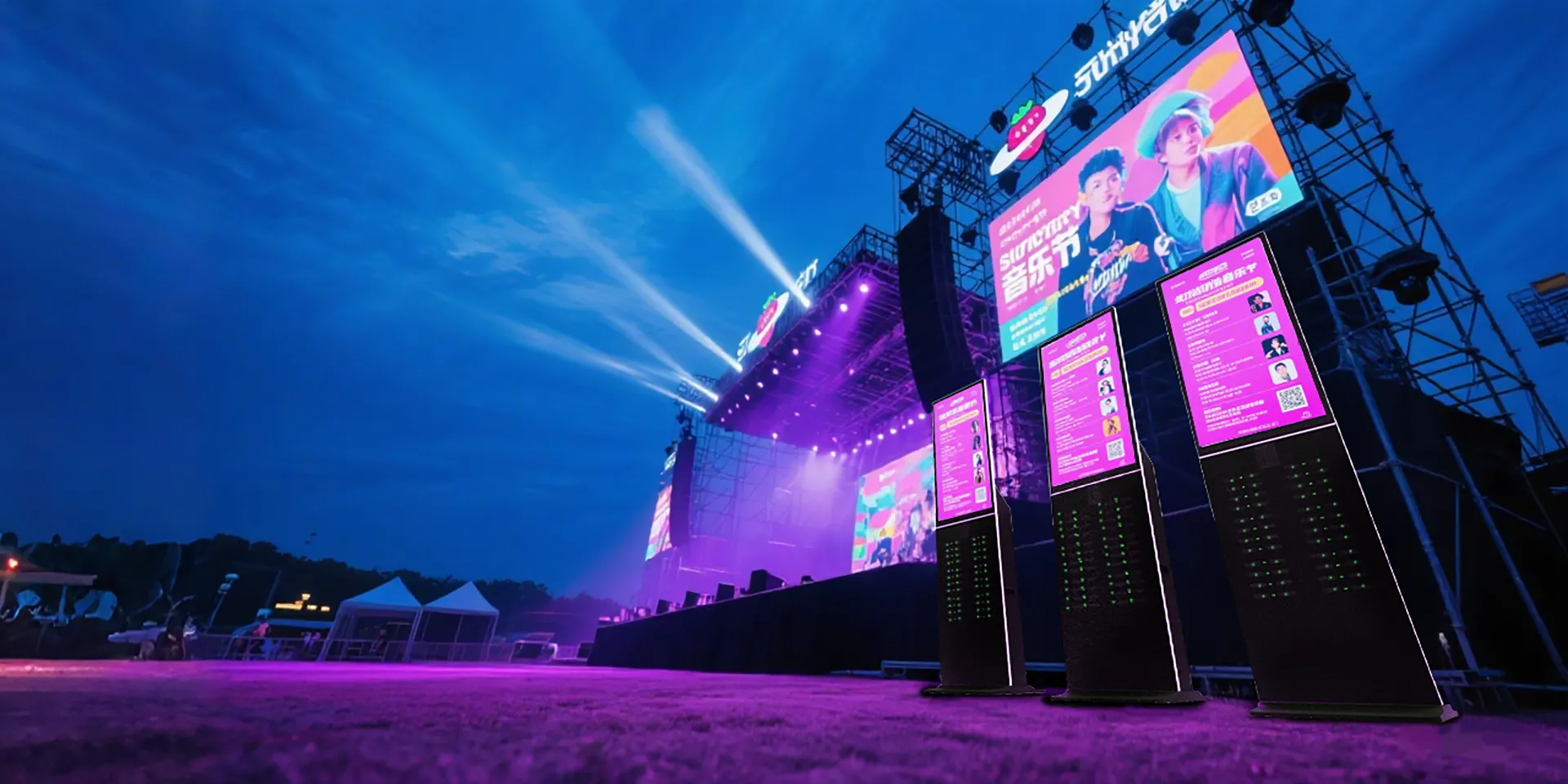 落地式充电站配置43/55英寸高清广告屏,在超高人流量的音乐会现场,通过大屏投放品牌广告,实现高价值曝光,强化品牌影响力。